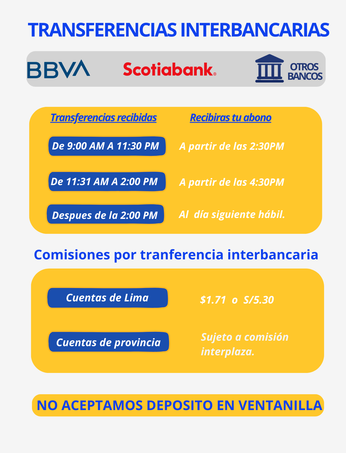 Desde tu banca movil o banca por internet transfiere a nuestra cuenta y envíanos una foto del comprobante.